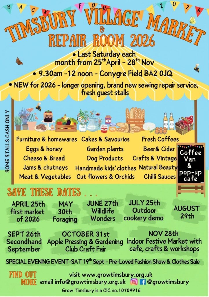 Join us as the 2026 market season starts again on Saturday 25th April, 9.30am to noon at the Conygre Rec field, BA2 0JQ.